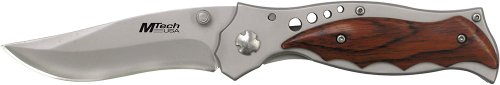 MTech USA - Couteau de poche champêtre manche bois d'erable / Ouverture avec le pouce / Noir / Lame Inox / Clip ceinture au manche # MT033S